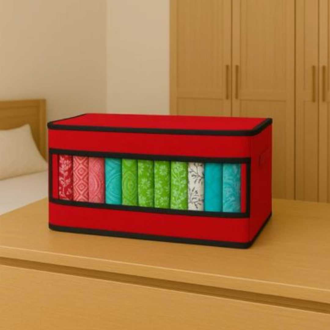 Declutter your wardrobe and organize your clothes effortlessly with our Printed Transparent Cloth Organizer Box â the perfect blend of fashion and function. Crafted with premium printed fabric and a sturdy build, this organizer not only saves space but also adds a modern touch to your storage solution.
