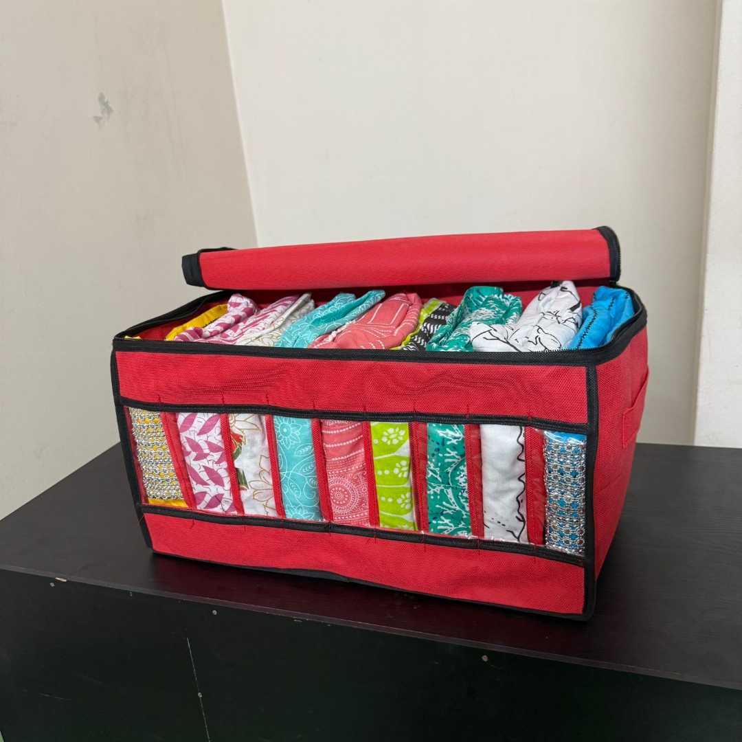 Perfectly designed to organize sarees, salwar kameez, panjabis, kids' clothes, and more. Each section keeps garments neat, separated, and wrinkle-free.